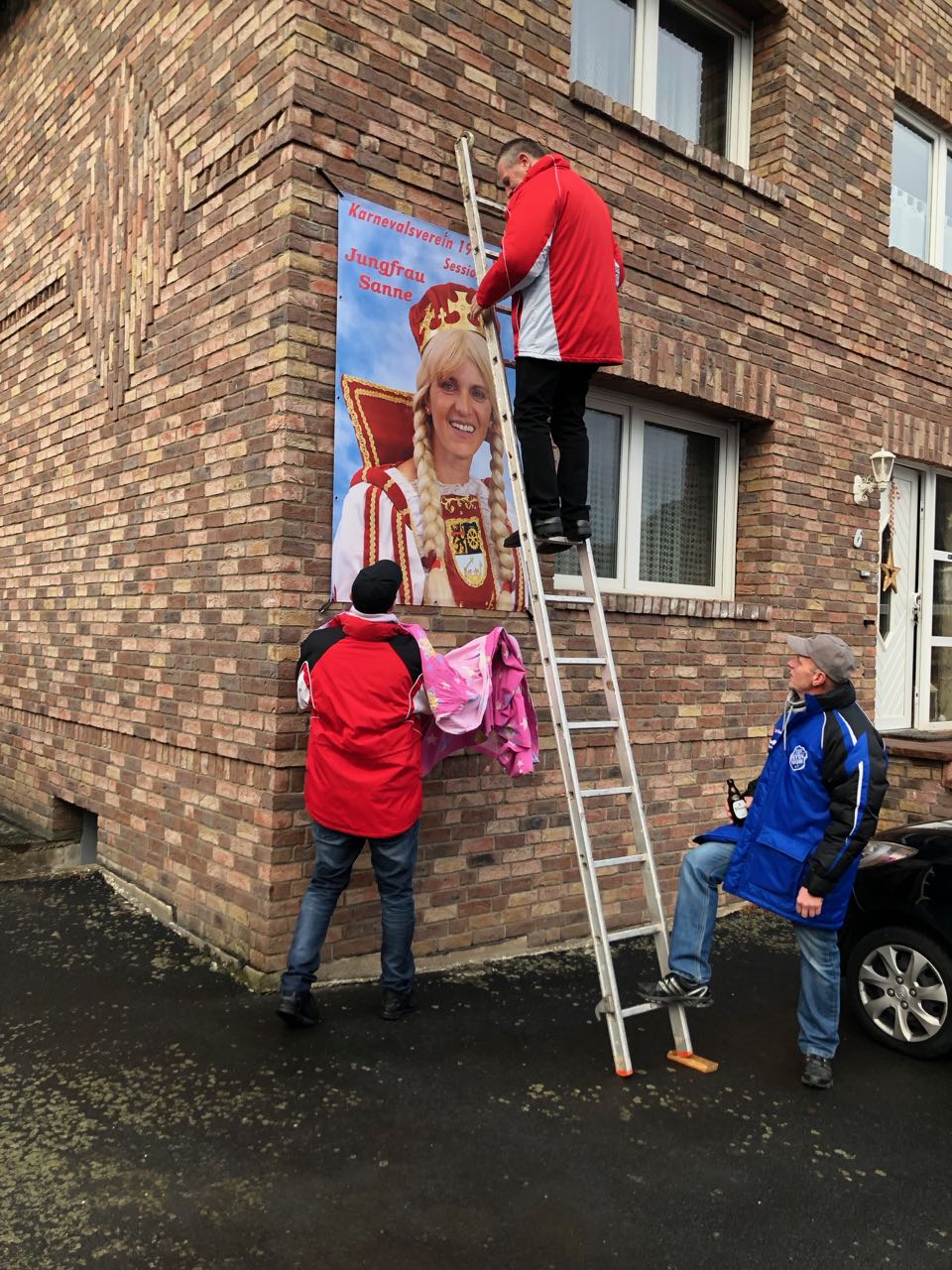 Unsere Jungfrau startete beim Schilder aufhängen mit dem ersten Highligth.
